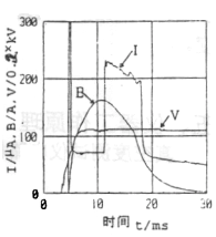 整機由測量控制電路、電場高壓產(chǎn)生電路、磁場線圈電流控制電路、通訊、打印機、液晶顯示電路等組成。其工作過程為:由測量控制電路發(fā)出指令,由開關(guān)電源給磁場電容充電,通過控制電路監(jiān)控,當(dāng)磁場電容上的電壓達(dá)到預(yù)定值后,控制電路發(fā)出兩路控制信號分別控制電場高壓的輸出和磁場線圈電流的導(dǎo)通,使滅弧室處于強電場、強磁場的狀態(tài)中,滅弧室開始放電,產(chǎn)生離子電流I,如圖2中的曲線I所示。該電流經(jīng)取樣電阻R和預(yù)處理電路后輸入單片機,最后經(jīng)運算由液晶顯示屏顯示測得的真空度值。