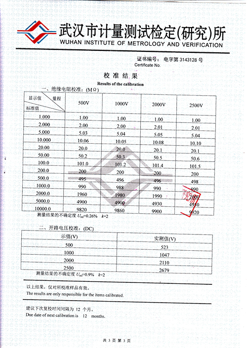輸出電壓等級(jí) | 500V,1000V,2000V,2500V | |